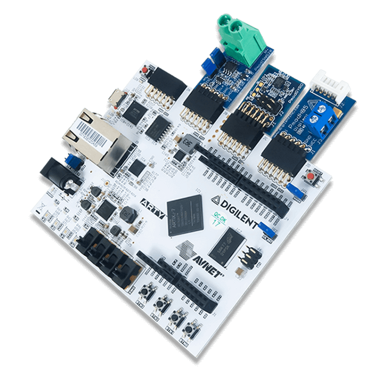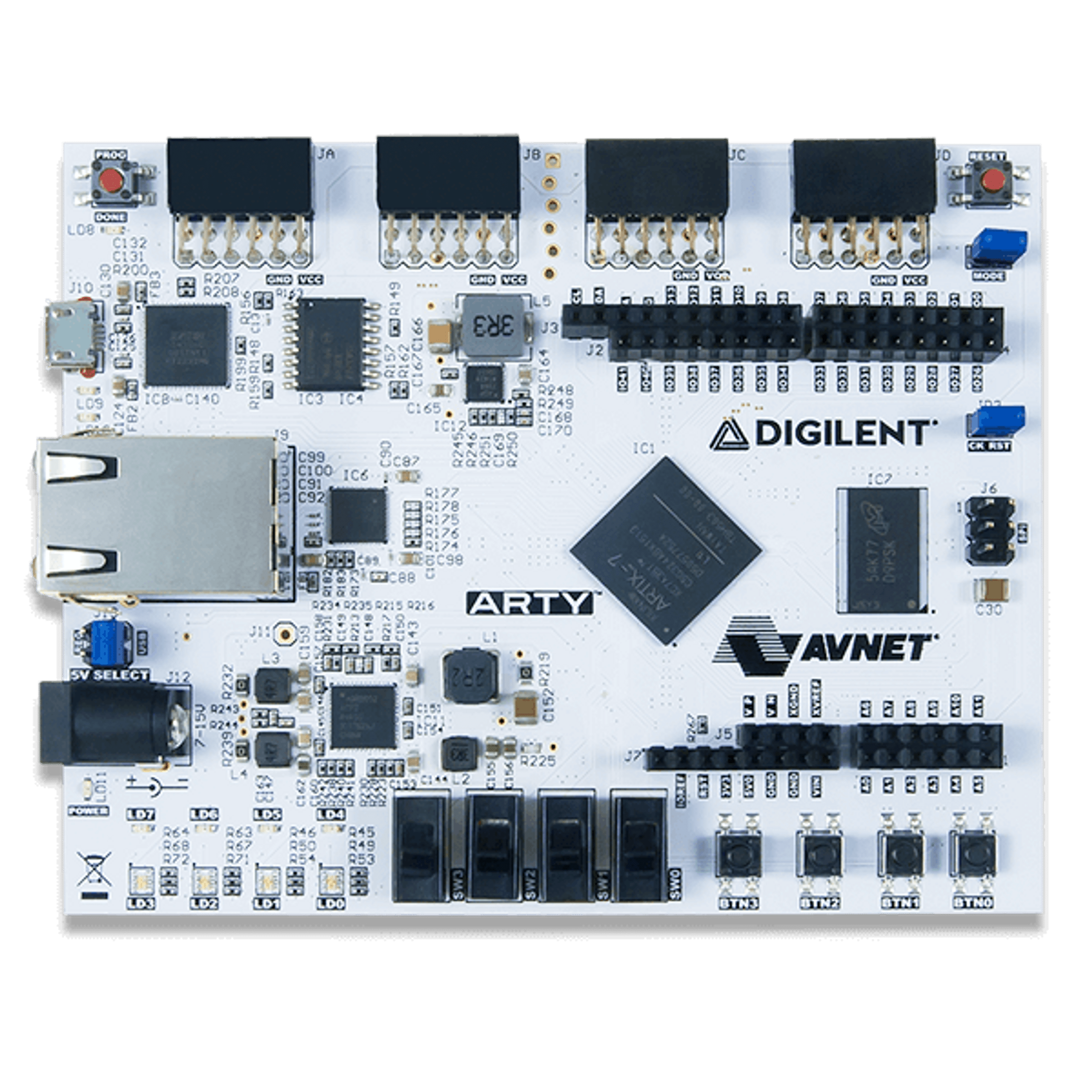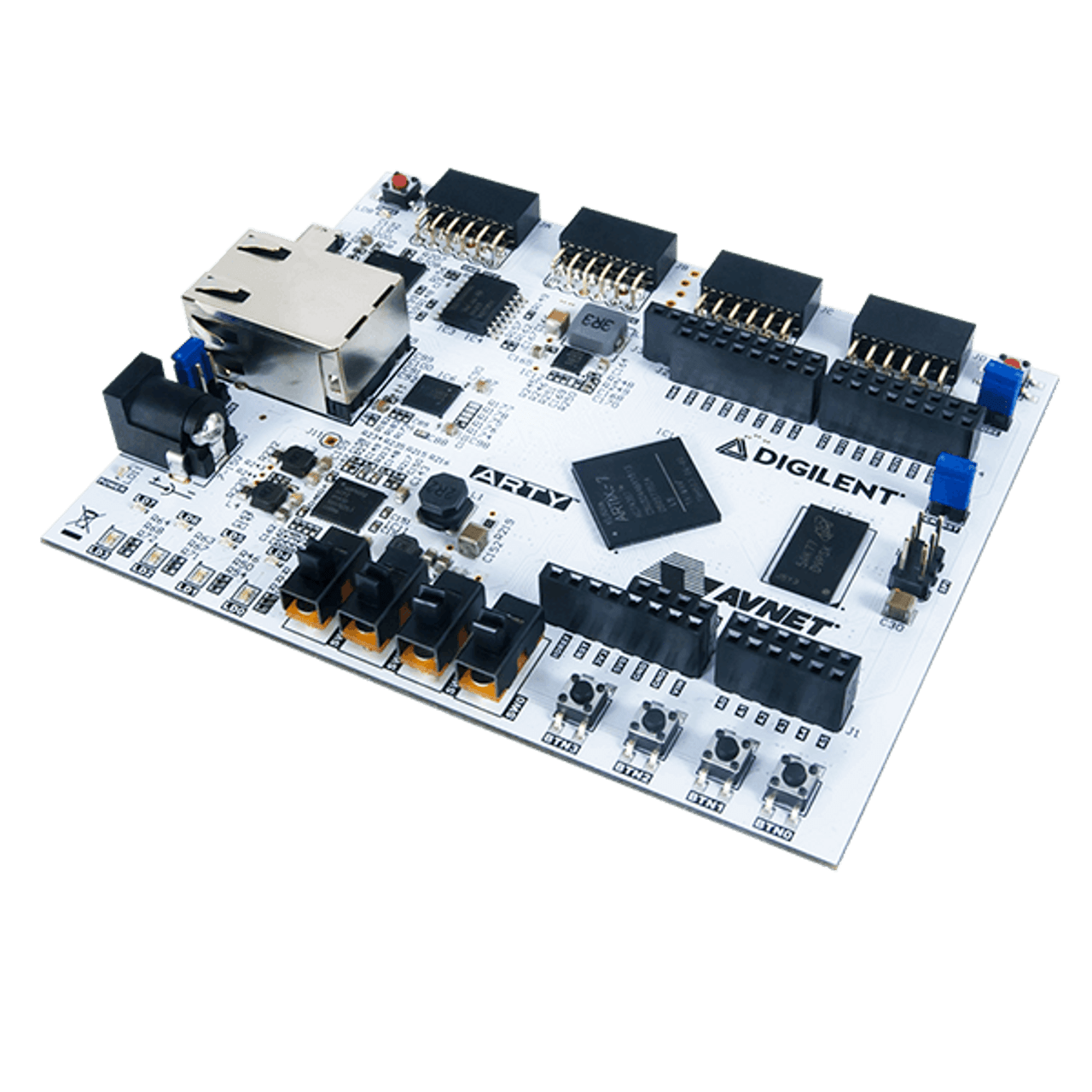 The Arty family of Digilent FPGA/SoC boards was designed with versatility and flexibility in mind. With universally popular Arduino™ headers and multiple Pmod™ ports, an Arty will be the most adaptable FPGA/SoC board in your toolbox.