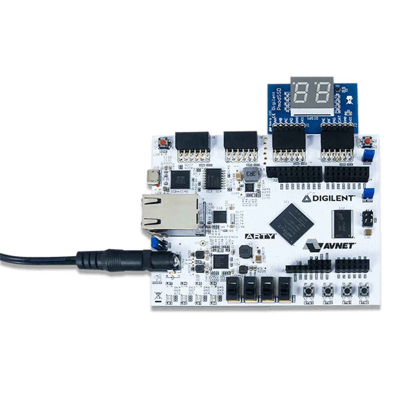 If the Arty A7 offers more performance than your application requires, the more affordable Arty S7, featuring the Spartan-7 FPGA, may be a better option. If you are looking for an SoC-based development board, consider the Arty Z7, featuring the Zynq-7000 APSoC.