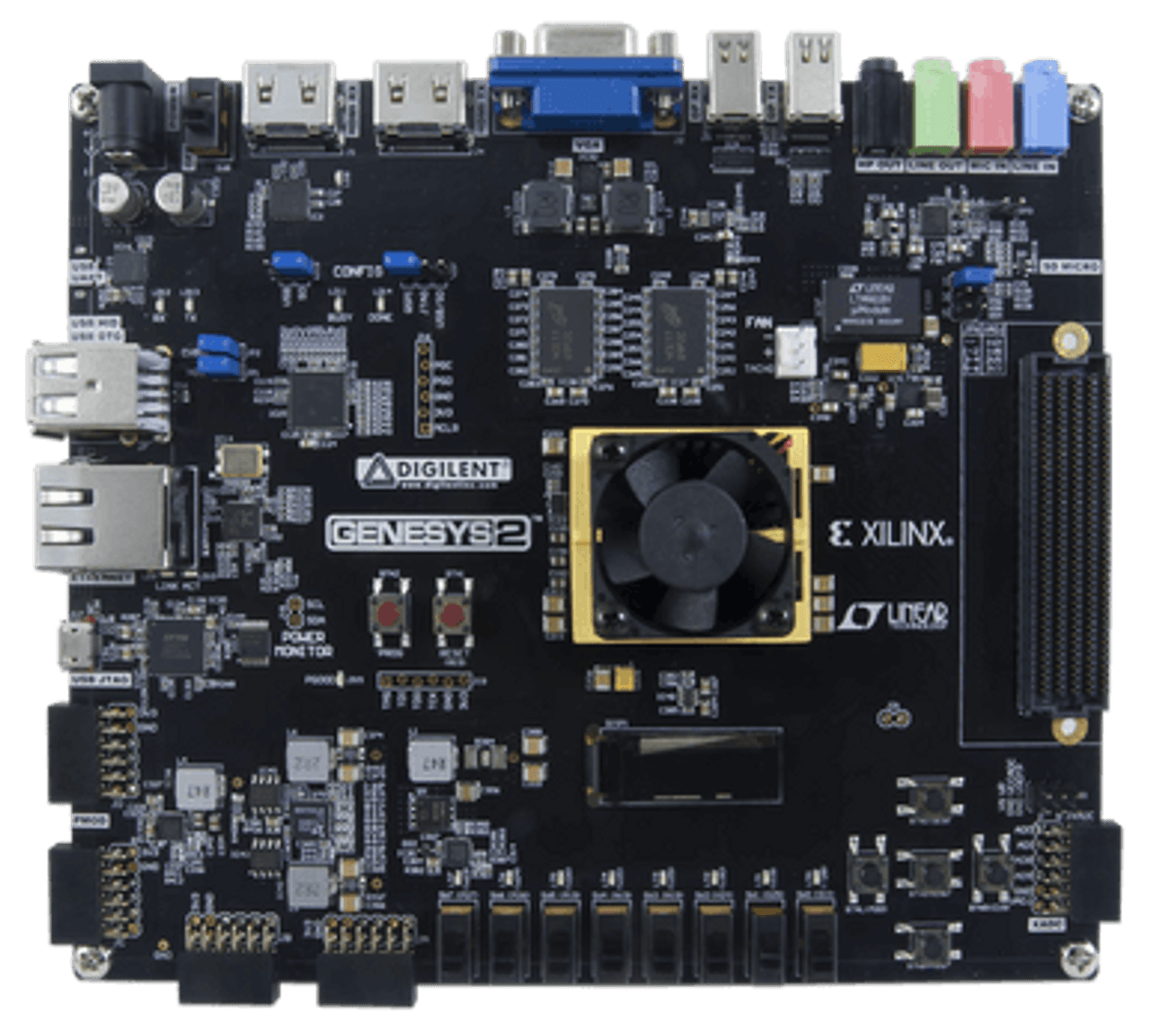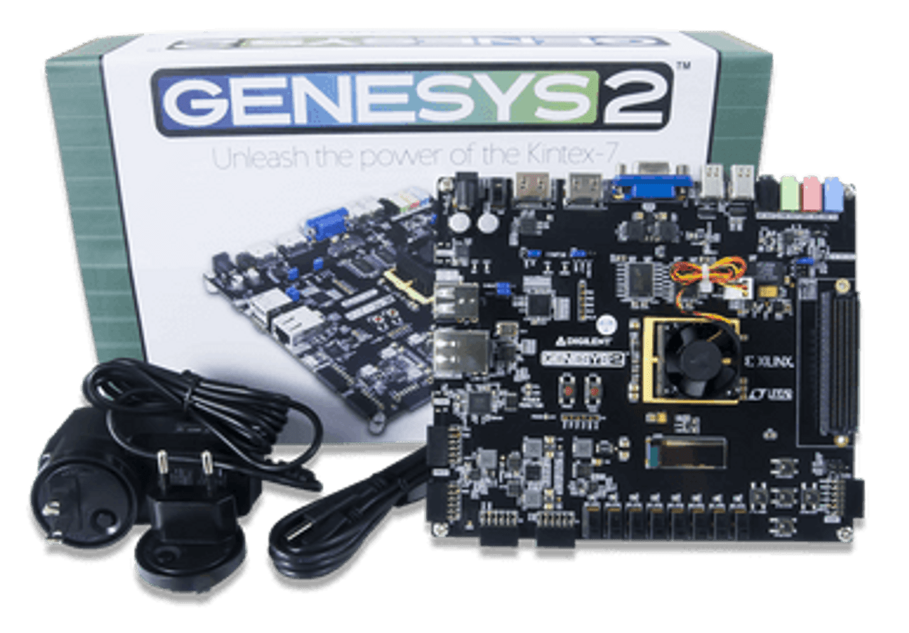 The Genesys 2 is a high-performance, ready-to-use FPGA development board built around the AMD Kintex™ 7 FPGA. The Genesys 2 is a powerhouse for data and video processing applications, but offers a variety of peripherals making it a great solution for a wide array of projects.