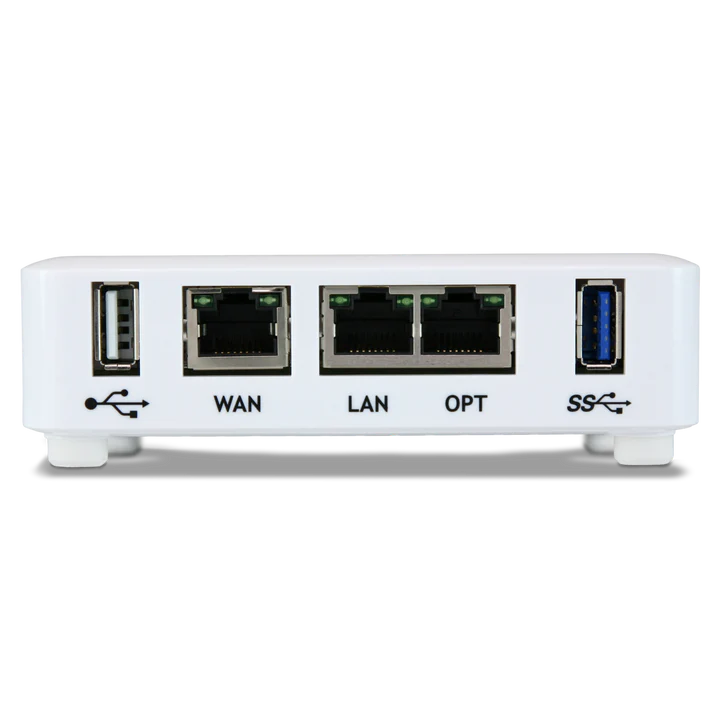 The Netgate® 1100 security gateway appliance with pfSense® Plus software is the ideal microdevice for the home and small office network. With a compact form factor, low power draw, and silent operation it can run completely unnoticed on a desktop or wall. Featuring a Dual-core ARM Cortex-A53 1.2 GHz CPU, (3) 1 GbE ports, and 1 GB of DDR4 RAM, the Netgate 1100 enables up to 927 Mbps routing and 607 Mbps of firewall throughput.