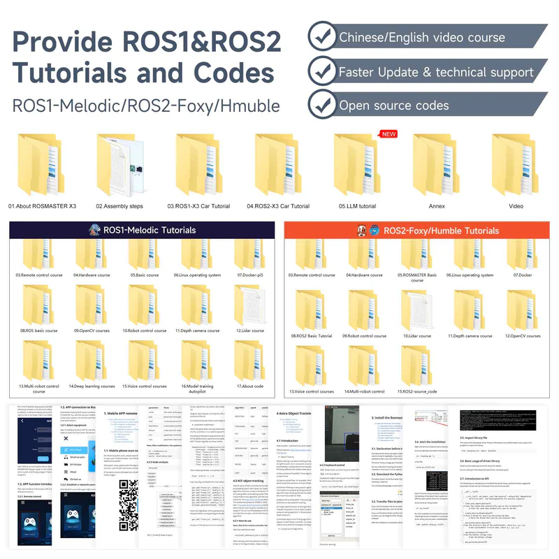 Yahboom provides mainstream ROS1&ROS2 system images and Docker for ROSMASTER X3, using Humble and Foxy, with strong stability and rich information